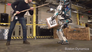 看著really心疼!(其實只是谷歌旗下的Boston Dynamics對機器人進行的平衡測試,而不是什么虐待)