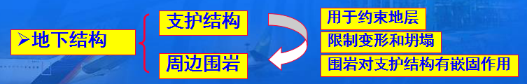 地下結構一般包括支護結構和周邊圍巖,支護結構主要用于約束底層、限制變形和坍塌,圍巖對支護結構有嵌固作用。