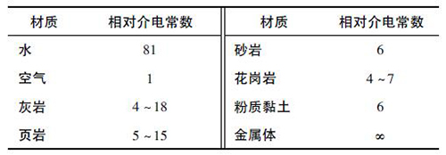 根據(jù)材料的相對(duì)介電常數(shù),由式( 2) 可計(jì)算出電磁波在該介質(zhì)中的傳播速度,從而可以根據(jù)反射波的接收時(shí)間判斷出反射體的位置。