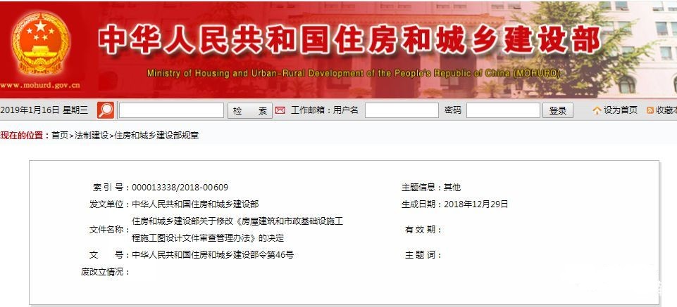 1月16日,住建部正式發(fā)文修改《房屋建筑和市政基礎(chǔ)設(shè)施工程施工圖設(shè)計(jì)文件審查管理辦法》的決定:將消防、人防等設(shè)計(jì)并入施工圖設(shè)計(jì)文件審查