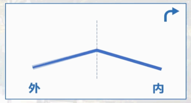 最后一個為了讓超高計算更加清晰,還需要明確橫斷面上的幾個代表點,以道路左轉為例。有左側也就是內側路肩邊緣、內側路面邊緣、路中、和右側也就是外側路面邊緣、路肩邊緣這五個代表點。道路右轉同理。