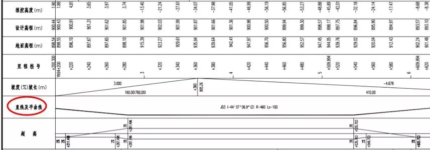 我們在道路平縱橫設計后,會生成一張路基設計表。路基設計表中序列數有道路中線、內側路基邊緣、外側路基邊緣的高程值,這三個值是有在設置超高需求的彎道超高計算完成后才能得到的。