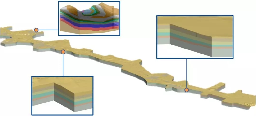 構(gòu)建三維地質(zhì)模型。地質(zhì)條件關(guān)乎設(shè)計質(zhì)量,項目組研發(fā)了地質(zhì)建模軟件,根據(jù)項目勘探的原始鉆孔、地質(zhì)剖面圖等數(shù)據(jù),建立了項目區(qū)域三維地質(zhì)模型,直觀反映地質(zhì)狀況。