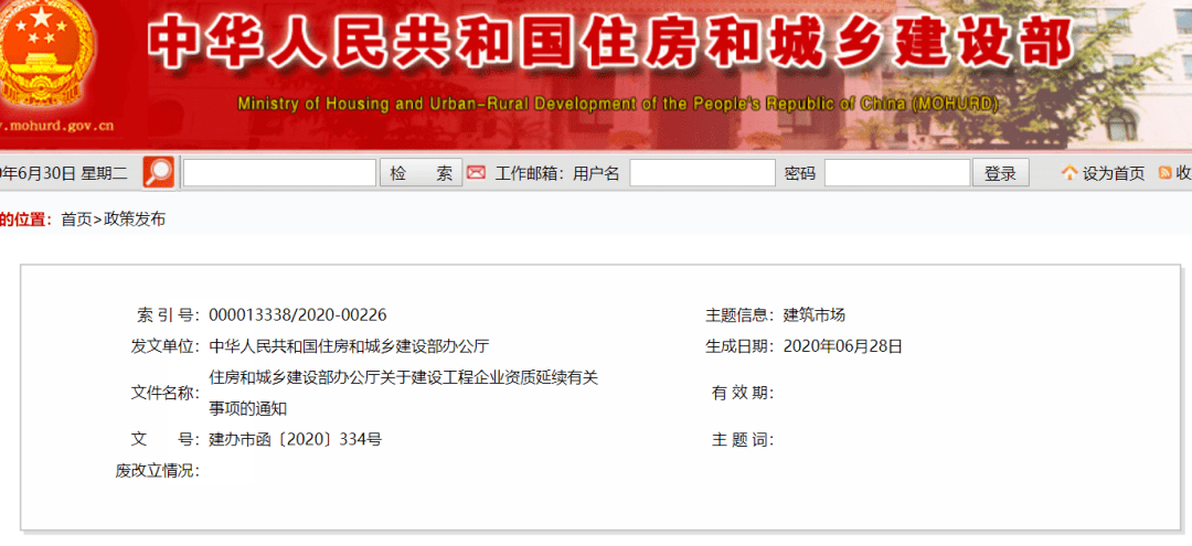 住建部發文明確資質證書有效期統一延期至2021年12月31日!