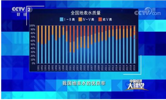 我們先來看看全國的地表水的環(huán)境質(zhì)量。2019年我國地表水的優(yōu)良率已經(jīng)達到了74.9%,這個數(shù)字比上一年提高了3.9%。