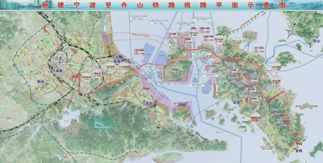 甬舟鐵路是省重點(diǎn)項(xiàng)目之一,西起寧波東站,經(jīng)寧波市鄞州區(qū)、北侖區(qū),舟山市金塘島、冊(cè)子島和富翅島至舟山本島,終于舟山市白泉鎮(zhèn),運(yùn)營(yíng)長(zhǎng)度77km,為雙線高速鐵路,設(shè)計(jì)行車速度250km/h。全線新建橋梁33座、全長(zhǎng)27.764公里,新建隧道17座、全長(zhǎng)35.246公里。