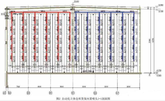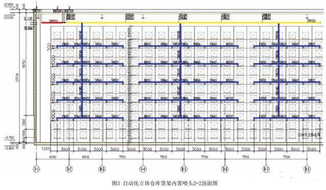 1、自動化立體倉庫由于最大儲物高度超過13.5m,頂板下噴頭無法滿足滅火要求,需要頂板下噴頭和貨架內(nèi)噴頭結(jié)合布置,達(dá)到滅火作用,頂板下噴頭采用的噴頭特性系數(shù)需要通過計(jì)算確定,需滿足噴頭噴水強(qiáng)度要求。