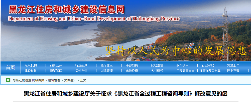 黑龍江省住房和城鄉建設廳關于征求《黑龍江省全過程工程咨詢導則》修改意見的函