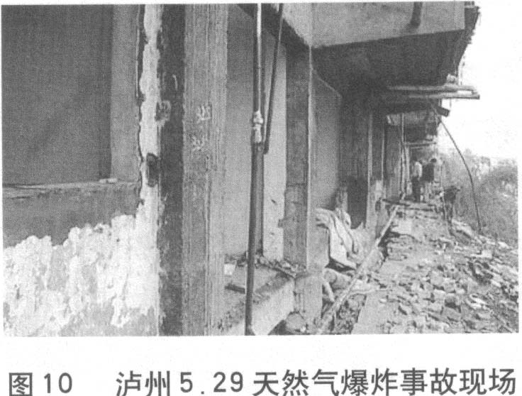 1.2006年8月30日上午,重慶市南岸區(qū)在進行道路改造施工時,挖掘機不慎將天然氣主管道挖破,導(dǎo)致天然氣猛烈外噴,氣柱高達近十米。事故發(fā)生后,上千戶居民被緊急疏散,未造成人員傷亡,當(dāng)?shù)鼐用竦娜粘I钍艿酵庥绊憽?br /> 2、2004年5月29日19時45分,瀘州市納溪區(qū)炳靈路15號居民樓人行道下,突然發(fā)生劇烈的天然氣爆炸事故,造成5人死亡,35人不同程度受傷,附近一樓10余居民的家園被毀,臨街一樓12間門面受損,近50米長范圍內(nèi)的街道被震得一片狼藉。事故的原因是:管道局部的防腐層受到外力破壞,導(dǎo)致腐蝕穿孔,該位置正好位于民樓附一層與道路堡坎形成的窄縫中,地勢較低,聚集大量天然氣,因氣候變化因素發(fā)生膨脹而釋放至窄縫外,與空氣形成爆炸性氣體,遇人行道上不明火源而引發(fā)爆炸。