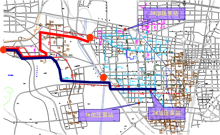 熱水網干線設分段閥門。輸送干線2~3km;輸配干線1~1.5km。