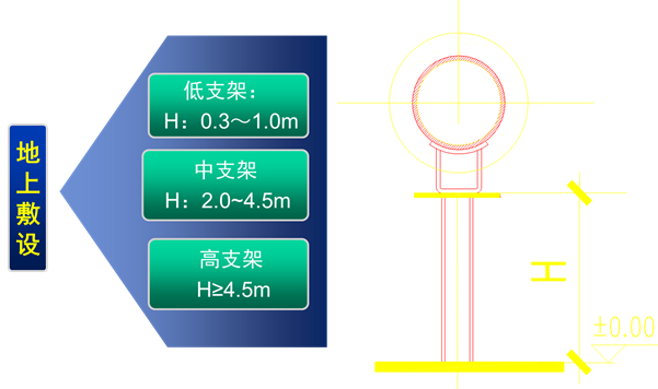 架空管道可和其它管道敷設在同一管架上,應便于檢修,不得架設在腐蝕性介質管道的下方。