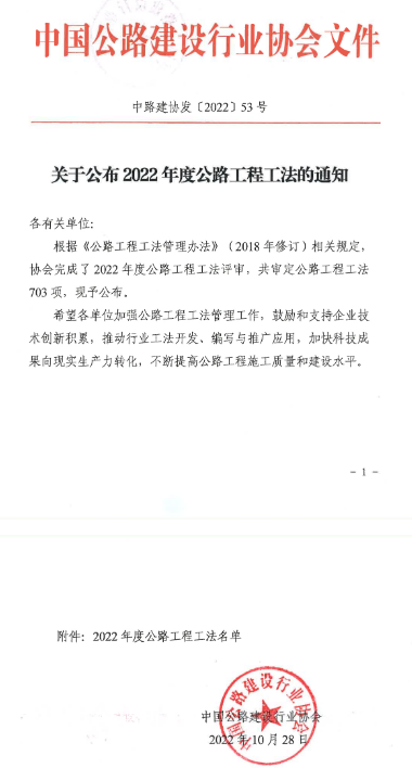 2022年度公路工程工法評審結果出爐
