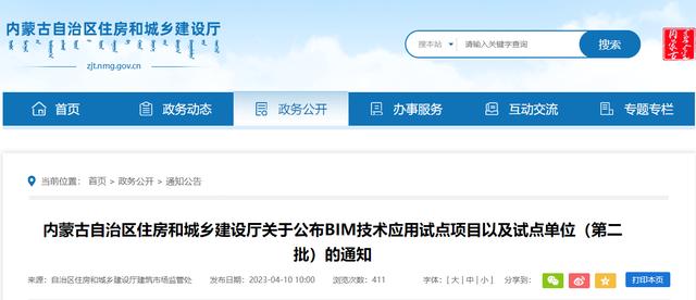 4月10日內蒙古住建公布了第二批BIM技術應用試點項目以及試點單位。