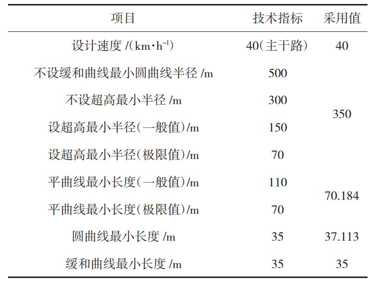 表 1 平面線形標準及設計采用值匯總