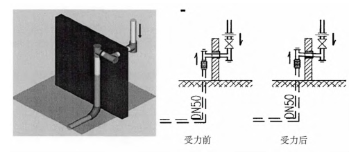 建筑的沉陷對煤氣管線的結(jié)構(gòu)設(shè)計(jì)有很大的影響。高層建筑因其自身的自重,其沉陷對其的作用不可忽略,而沿其壁面鋪設(shè)的煤氣管線,在進(jìn)行結(jié)構(gòu)的同時(shí),還應(yīng)對其沉降的負(fù)面效應(yīng)進(jìn)行分析。為了降低建筑結(jié)構(gòu)的沉陷對天然氣管線的負(fù)面作用,可以采用以下幾種方法來進(jìn)行:1)在豎管上安裝波浪式的補(bǔ)償;2)增加導(dǎo)流管道的穿壁直徑。3) 引入管水平段設(shè)置金屬軟管等。