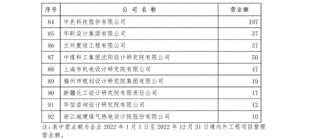 勘察設計企業工程項目管理和工程總承包營業額2023年排名出爐