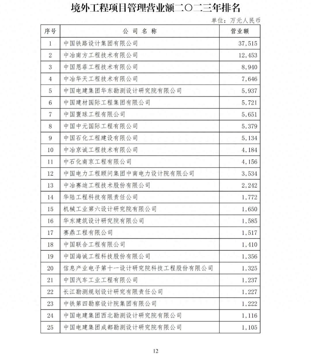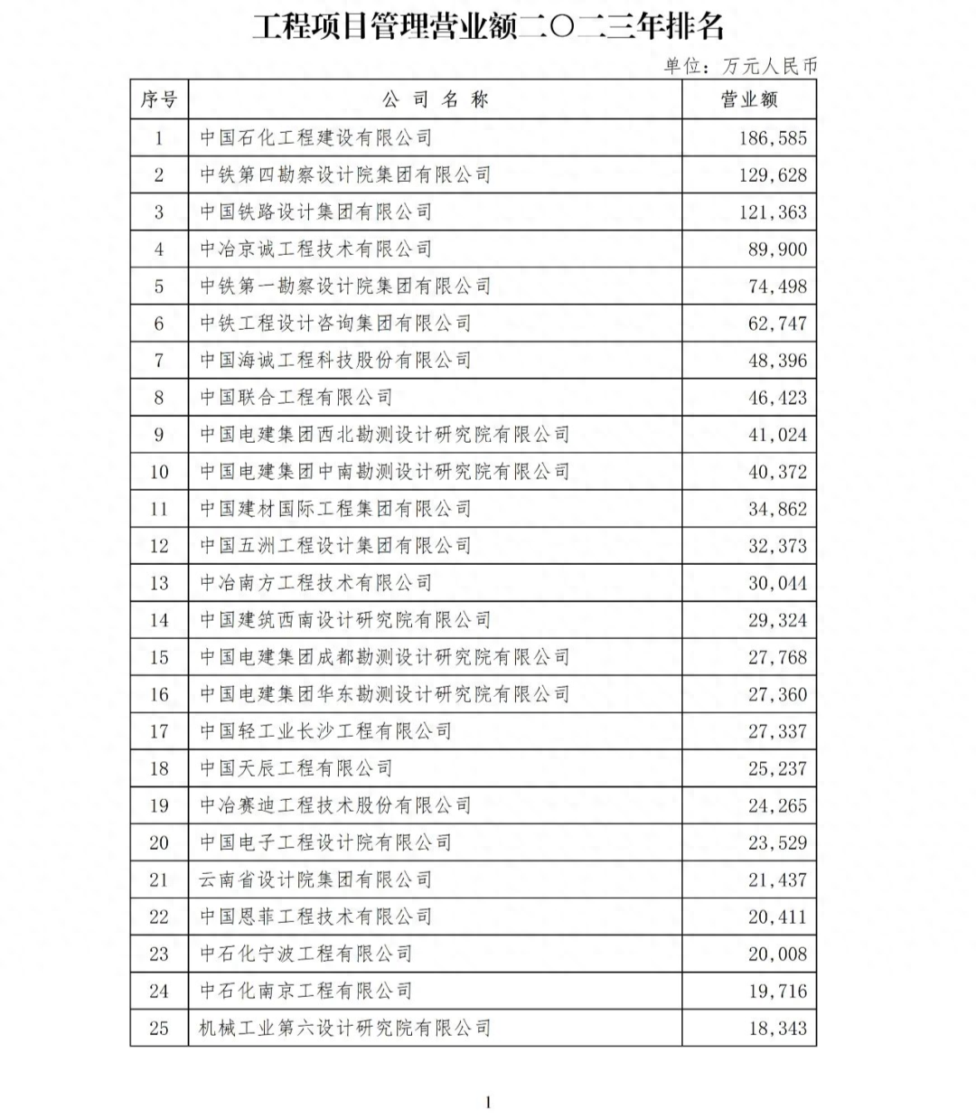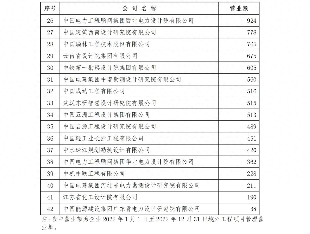 在各地方、各部門勘察設計同業協會支持與配合下,相關企業完成了工程項目管理、工程總承包等各項排序數據的自主申報工作,各地方、各部門勘察設計同業協會和總承包分會秘書處按照《勘察設計企業工程項目管理和工程總承包營業額排名活動管理辦法》(2018年修訂)對企業的申報數據進行了審核、匯總和復核?,F批準公布工程項目管理、工程總承包、境外工程項目管理、境外工程總承包營業額二〇二三年排名(詳見附件)。