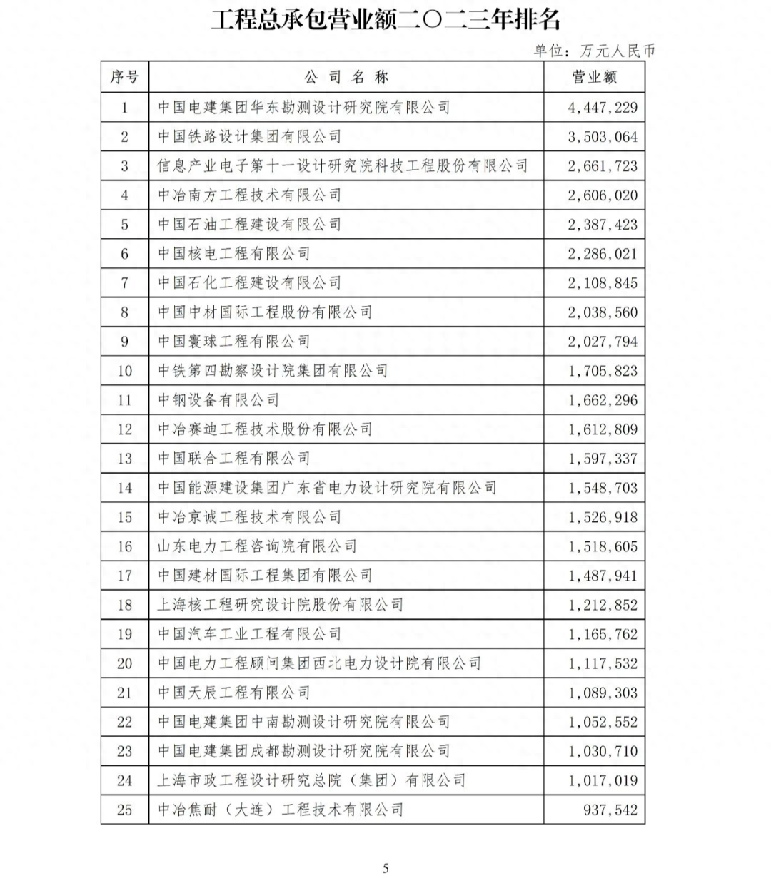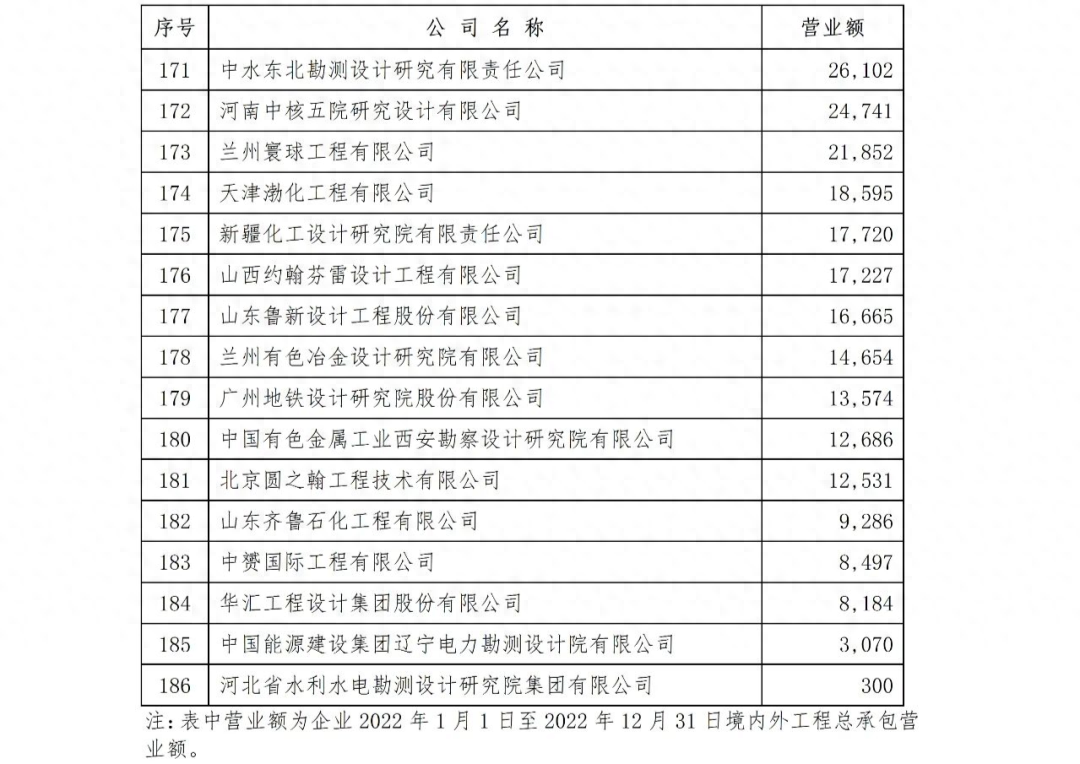按照《關于2023年開展勘察設計企業工程項目管理和工程總承包營業額排名活動的通知》(中設協字〔2023〕13號)要求,中國勘察設計協會建設項目管理和工程總承包分會(以下簡稱總承包分會)在全國勘察設計行業組織開展了勘察設計企業工程項目管理和工程總承包營業額排名工作。