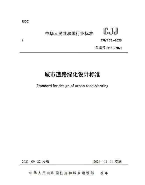 近日,住房和城鄉建設部批準和正式公布了由中國城市規劃設計研究院主持修編的行業標準《城市道路綠化設計標準》(編號CJJ/T75-2023),該標準將于2024年1月1日實施。