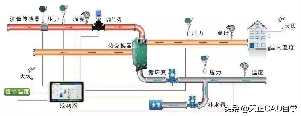 設(shè)計完成后,為促進(jìn)熱力站更好供熱,滿足人們采暖需要,還要明確工藝流程,對各項設(shè)備進(jìn)行科學(xué)合理安排,促進(jìn)設(shè)計水平提高。主要設(shè)備為一次網(wǎng)供水、一次網(wǎng)回水、二次網(wǎng)供水、二次網(wǎng)回水,再加上補水泵、止回閥、循環(huán)水泵、泄水閥、調(diào)節(jié)閥等設(shè)備,共同促進(jìn)整個熱力站有效運行和工作。在集中供熱系統(tǒng)之中,還要合理確定熱網(wǎng)管徑,科學(xué)選擇相應(yīng)型號的設(shè)備,為集中供熱正常運行創(chuàng)造便利,促進(jìn)供熱效果提升,更好滿足人們?nèi)詹膳枰?/p>