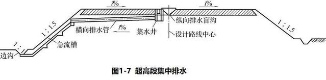 對于新建高速公路超高段的集中排水,宜采用在左側路緣帶的左側設置帶有鋼筋混凝土蓋板的預制整體式U形混凝土溝或縫隙式排水溝,每25~50 m設一處集水井,并通過橫向排水管引至邊坡的急流槽或暗管中,如圖1-7所示。