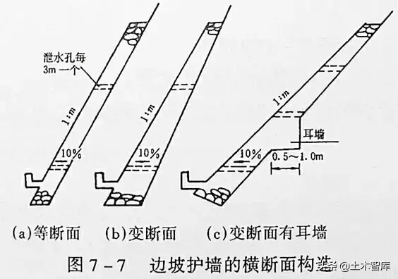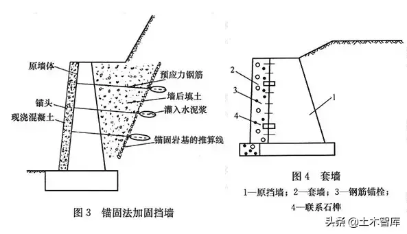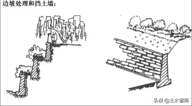 2、擋土墻:防止路基填土或山坡巖土坍塌而修筑的、承受土體側壓力的墻式構造物。