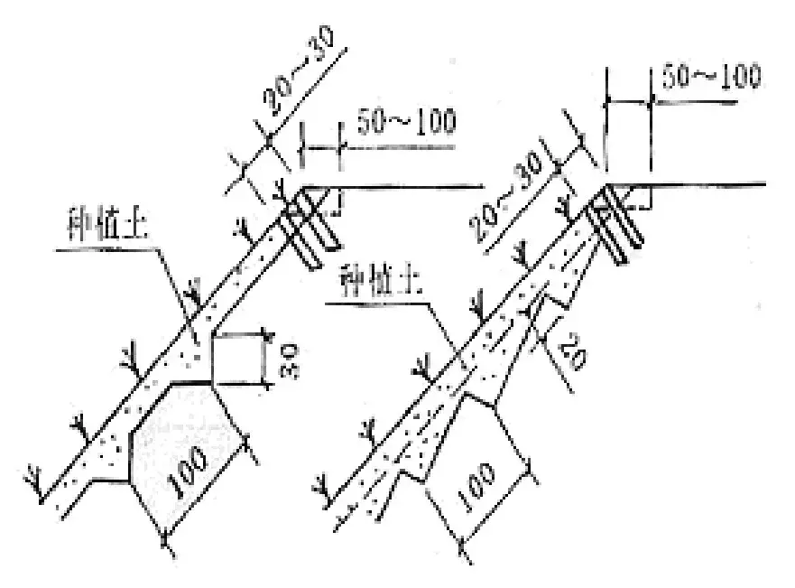 植草是一種施工簡單、造價經濟的有效坡面防護方法,適用于草類生長的土質路堤和路塹邊坡,一般要求邊坡坡度緩于1:1.25時,容許地表水流速0.4~0.6m/s,單級坡高在6.0m以內。種草時將草籽加土拌和,均勻播種在表土適當翻松的坡面上,必要時坡面加鋪5~10cm的種植土層,以有利種草成活和生長。