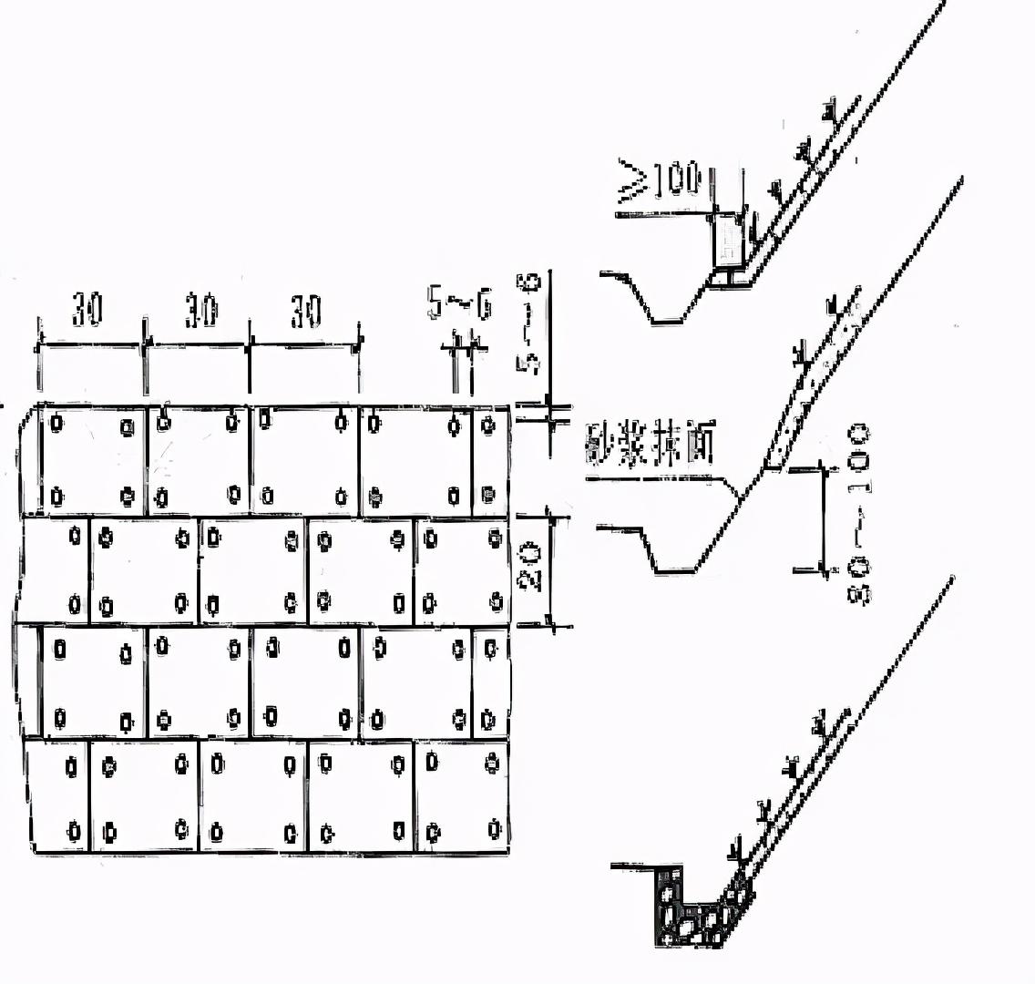 - 其作用與植草相同,效果更好,且可用于較高較陡的土坡上,亦可鋪在嚴重風化的巖層和成巖作用差的軟巖層邊坡上;