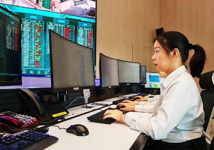 工作人員實時監管轄區排水管道、泵站、污水處理廠等運行情況。李紅云/攝