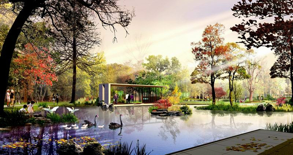本區景觀工程用地總面積為329700平方米(32.97公頃,第二版)其中:綠化面積:172934平方米,占總面積的52.5%;水體面積:107354平方米,占總面積的32.6%;廣場:15186平方米,占總面積的4.6%;